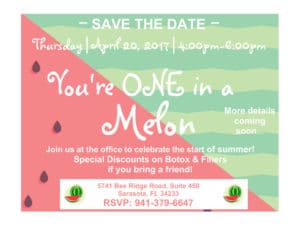 Join us at the office to celebrate the start of summer. Our event “You’re One in a Melon” is offering special discounts on Botox and Fillers if you bring a friend with you!